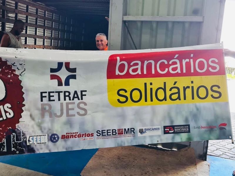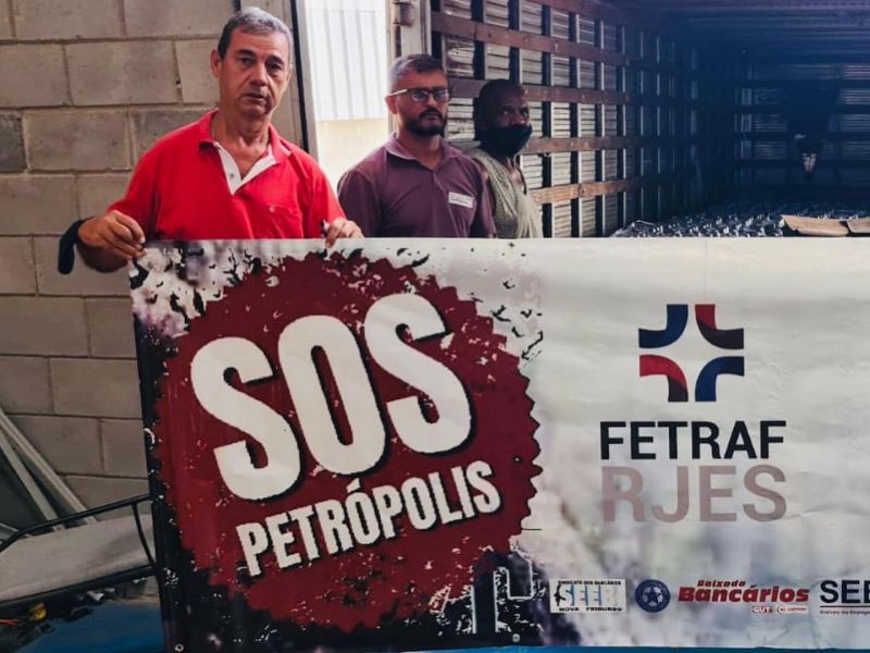 A Federação dos Trabalhadores do Ramo Financeiro dos Estados do Rio de Janeiro e Espírito Santo (Fetraf-RJ/ES), juntamente com os Sindicatos dos Bancários de sua base (Angra dos Reis, Baixada Fluminense, Espírito Santo, Itaperuna, Macaé e Região, Nova Friburgo e Três Rios), se mobilizaram e doaram um caminhão repleto de água mineral para as vítimas das fortes chuvas em Petrópolis, na região serrana do Rio de Janeiro.