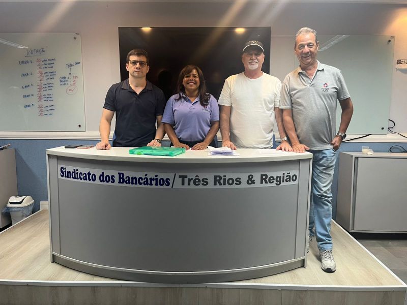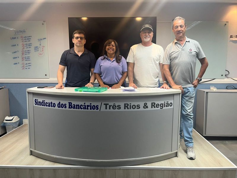 O Sindicato dos Bancários de Três Rios e Região celebra com orgulho o resultado das eleições sindicais realizadas nos dias 09 e 10 de dezembro. Com participação expressiva de 80% da base, a categoria reafirmou sua confiança e unidade ao eleger, com 100% dos votos, a chapa liderada pelo atual presidente Nilton Esperança, que permanece à frente da entidade ao lado de seus diretores.